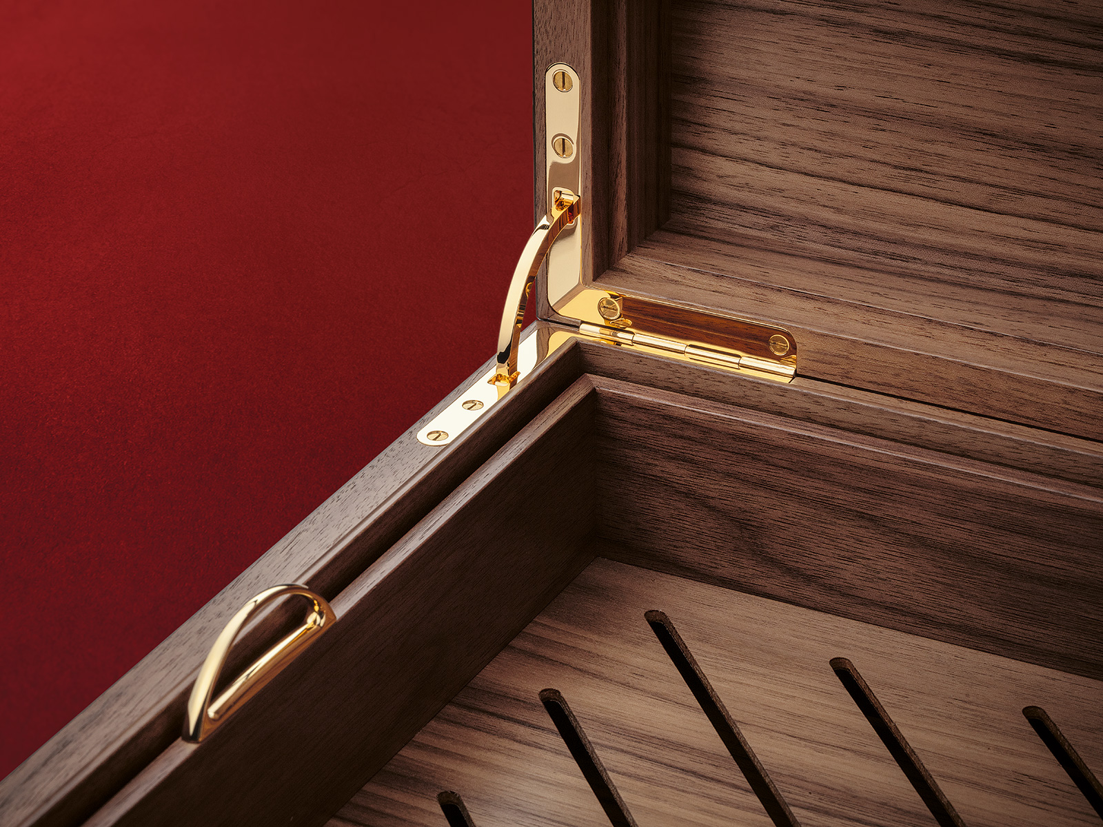- Angeschrägte Ablagen bieten Platz für zwei Zigarren